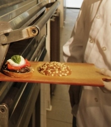 Roasted red onion, mozzarella cheese, and spinach with sundried tomato paste on ciabatta bread.